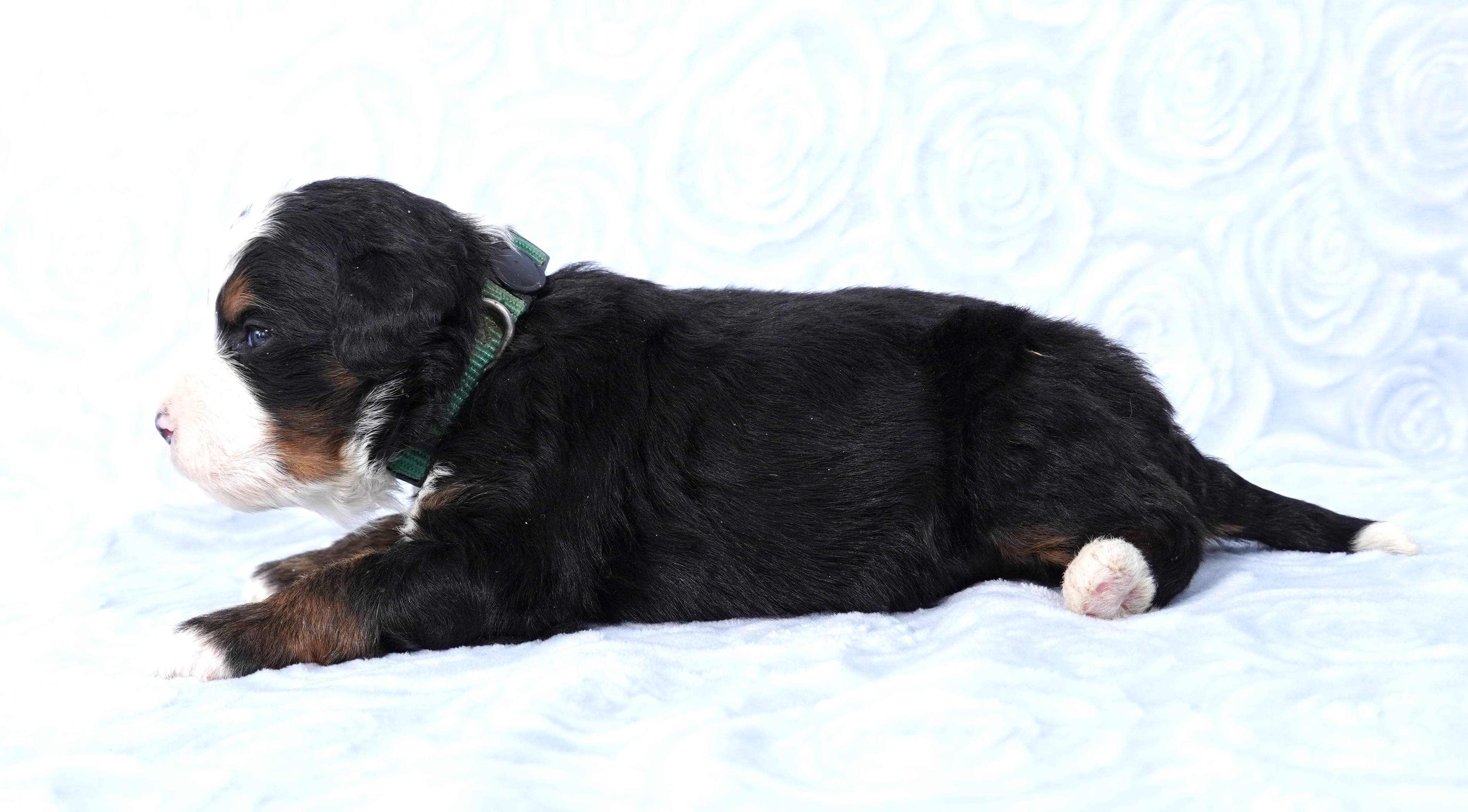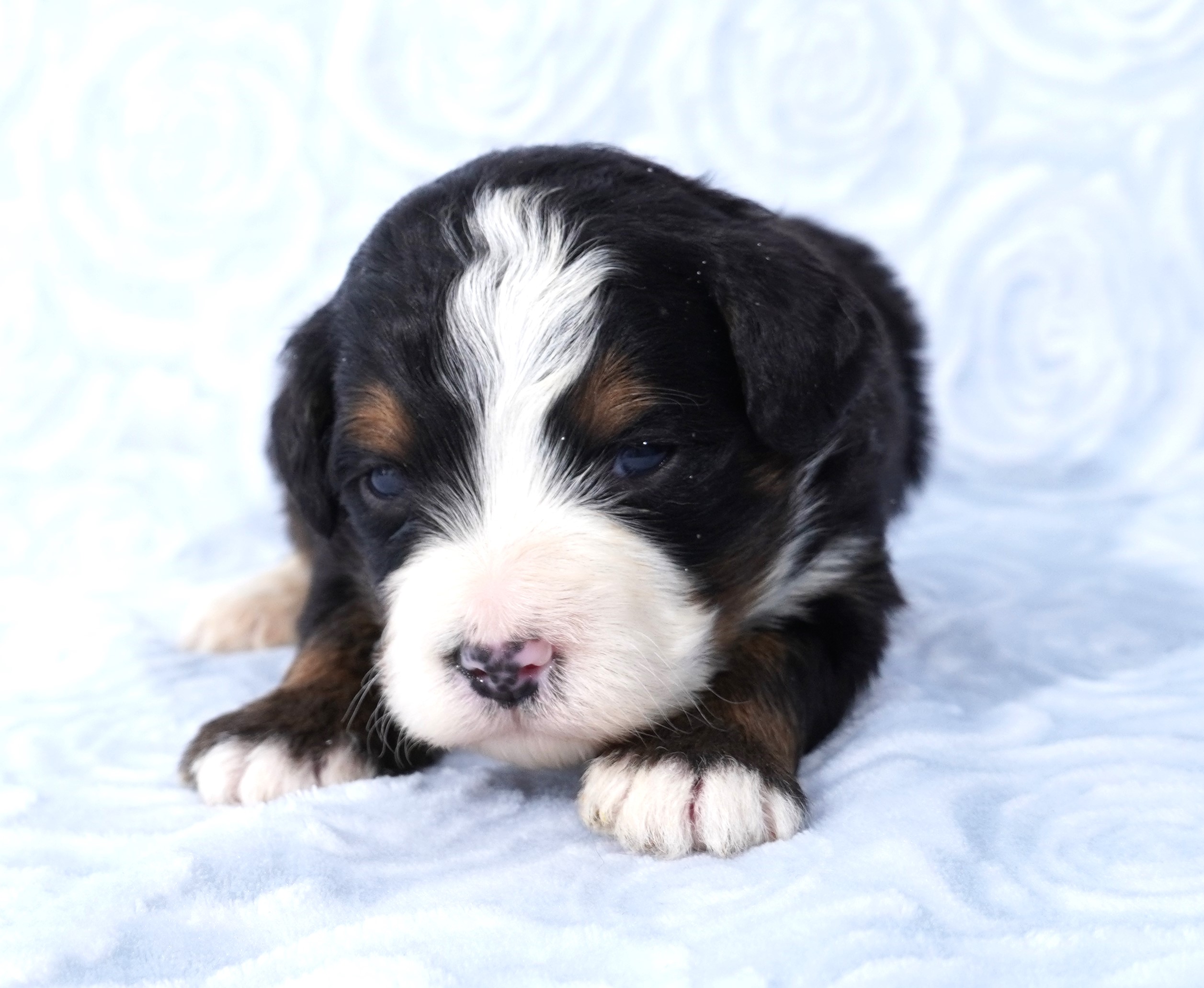 We are excited to introduce our beautiful litter of Tri-Color Mini Bernedoodle puppies, born November 23! These pups are being raised with love and care and are already showing sweet, playful personalities.